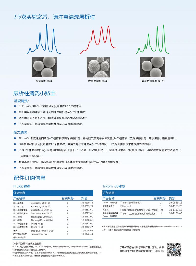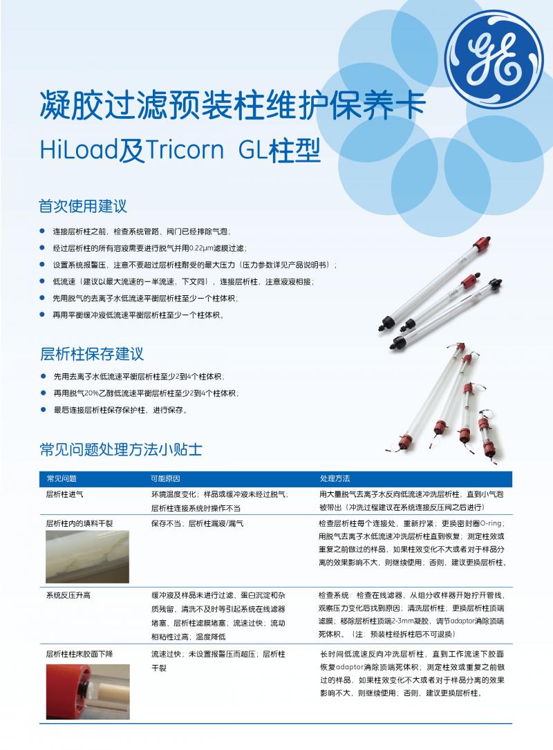Gel filtration prepacked column maintenance card HiLoad and Tricorn GL column type
