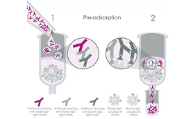 Pre-adsorption (also known as cross-adsorption) is an additional purification step used to increase the specificity of the antibody. The solution containing the secondary antibody flows through a matrix column containing immobilized serum proteins obtained from potentially cross-reacting species. The non-specific secondary antibody will remain in the column and the specific high secondary antibody will pass.